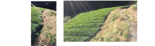 夏は多くの植物が育ちます。 雑草たちに負けじとお茶の葉も夏や秋の日差しの下スクスク育ちます。 自然農法のため、私たちは除草剤を使いません。 お茶の木たちは結構丈夫で雑草に囲まれてもすくすく育ちます。 雑草はその後、しっかりと草刈り機で管理致しています。